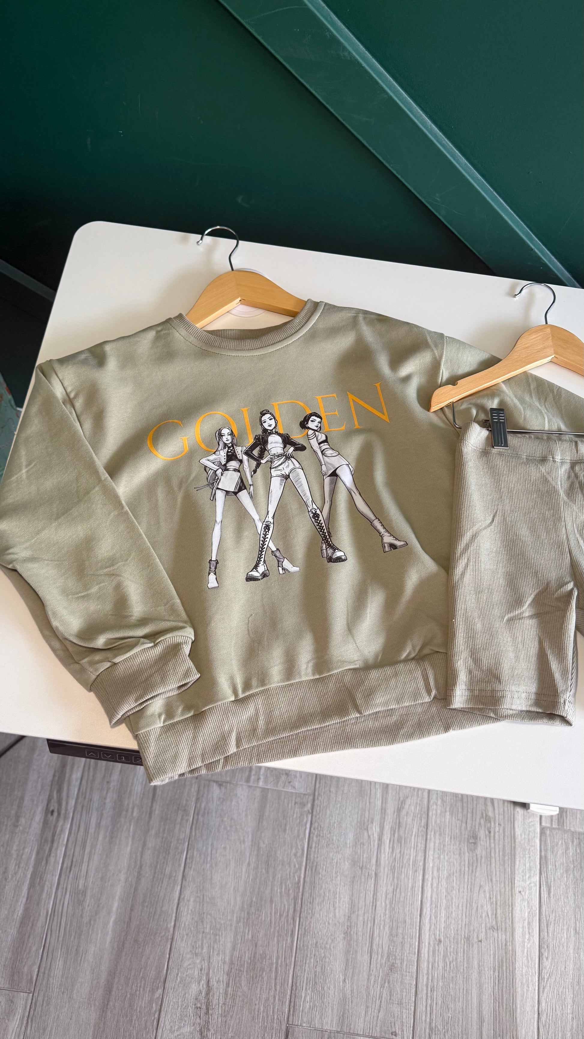 Get your little one ready to conquer the world with our GOLDEN Sweater and Biker Short Set. In trendy olive green, this toddler set combines style and strength. Perfect for playtime or lounging, because being strong doesn't mean you can't be comfy too.