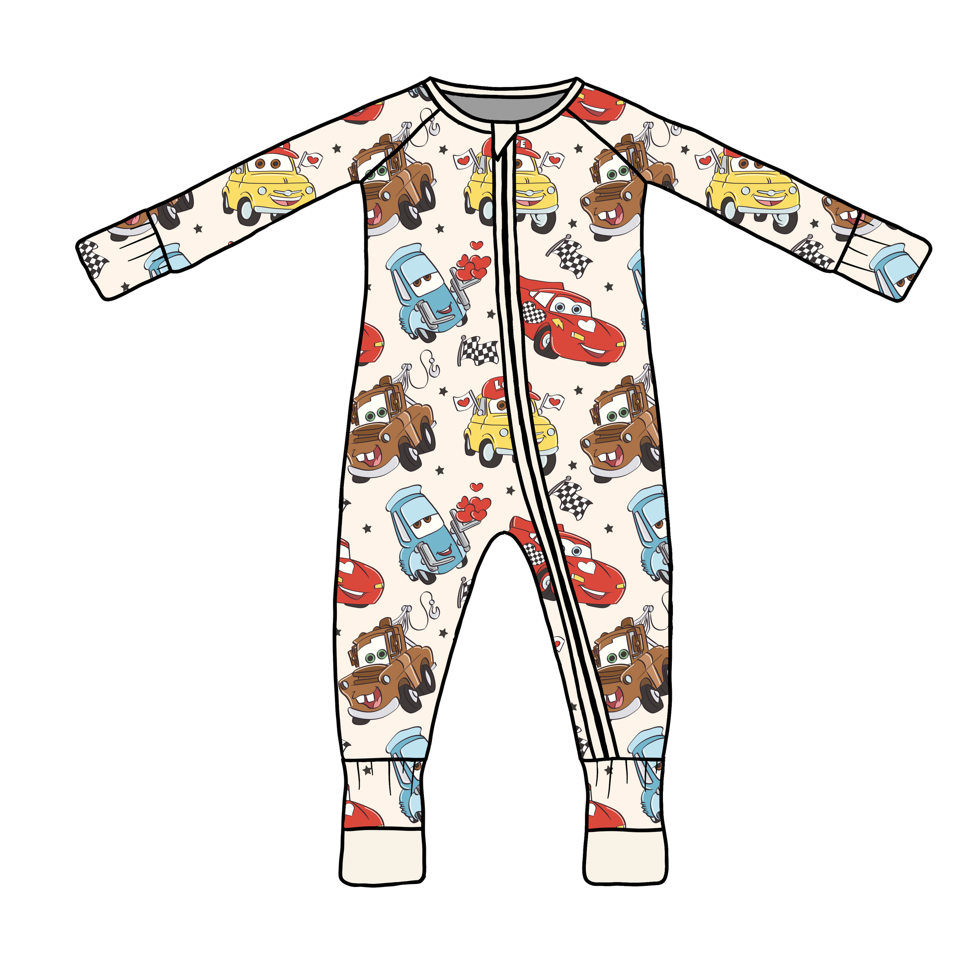 Buckle up for cozy cuddles in these adorable bamboo pajamas featuring a fun mix of hearts and cars! Perfect for little ones who love vehicles and romance in equal measure, this one-piece design offers all-day comfort whether it's Valentine's Day or any day of the year. Crafted from soft, breathable bamboo fabric, these pajamas keep kids cool and comfy through the night. The playful print celebrates two loves at once—ideal for the tiny driver with a big heart!